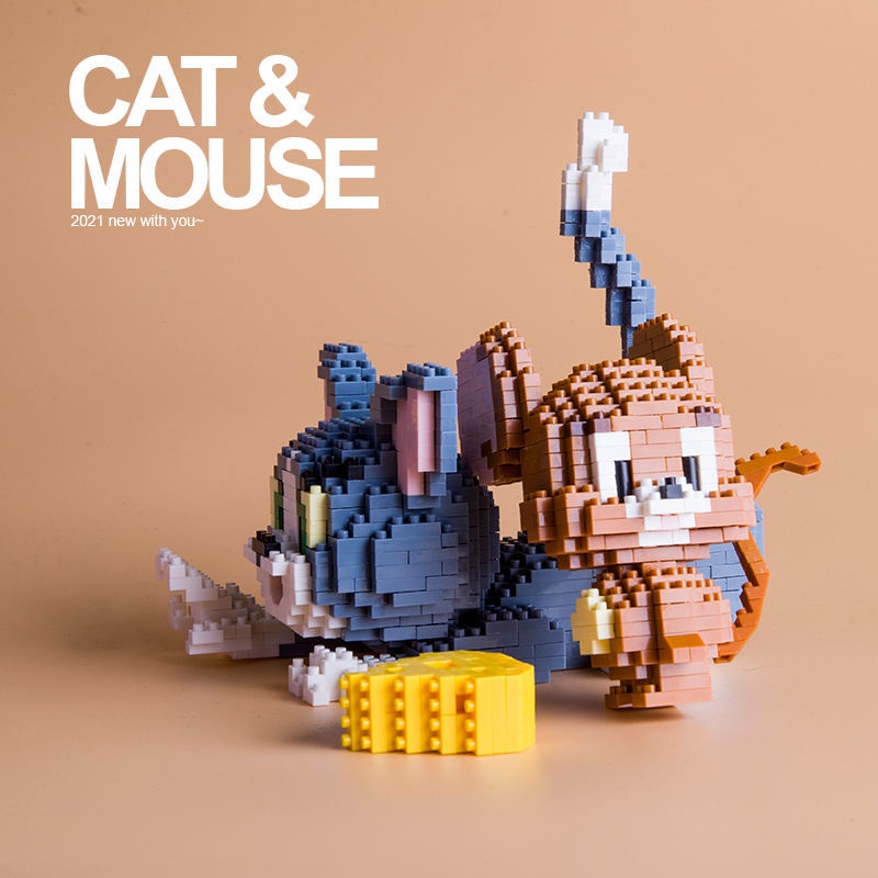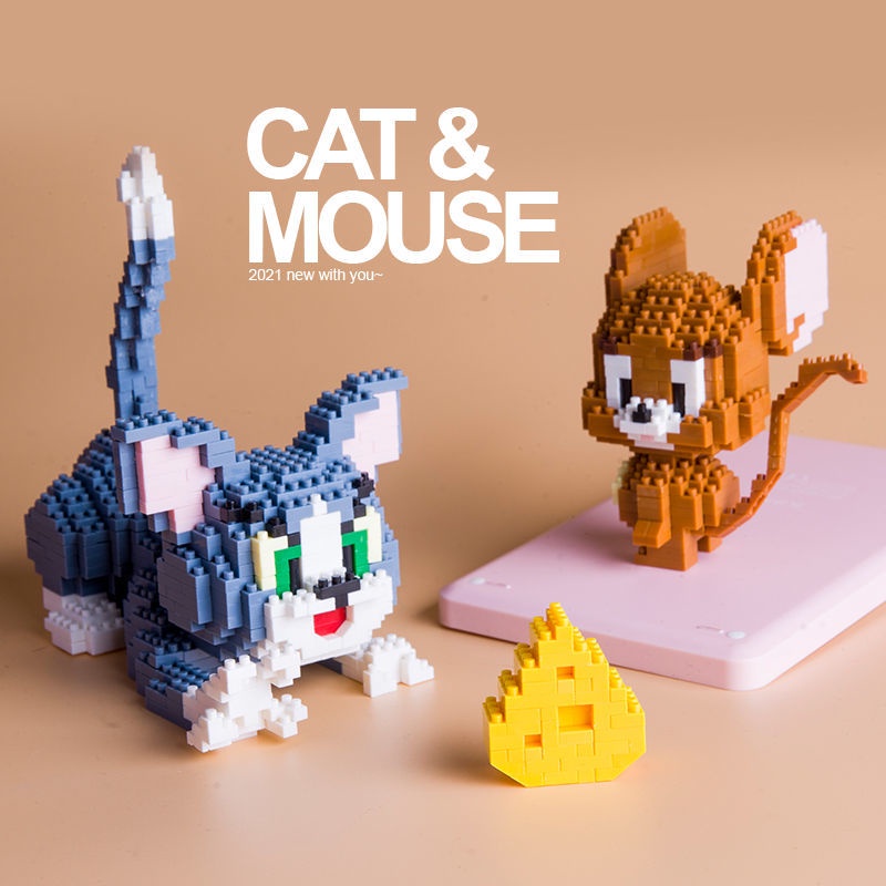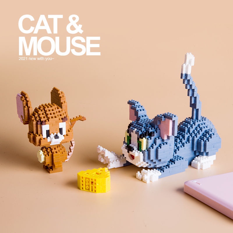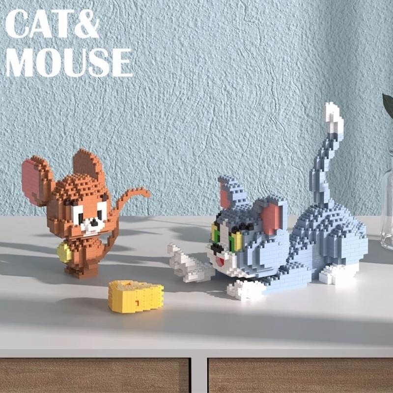 怀旧汤姆猫和老鼠微钻型拼装插小颗粒积木儿童玩具礼物