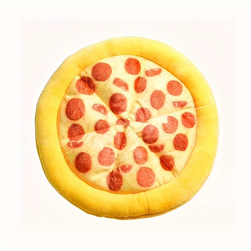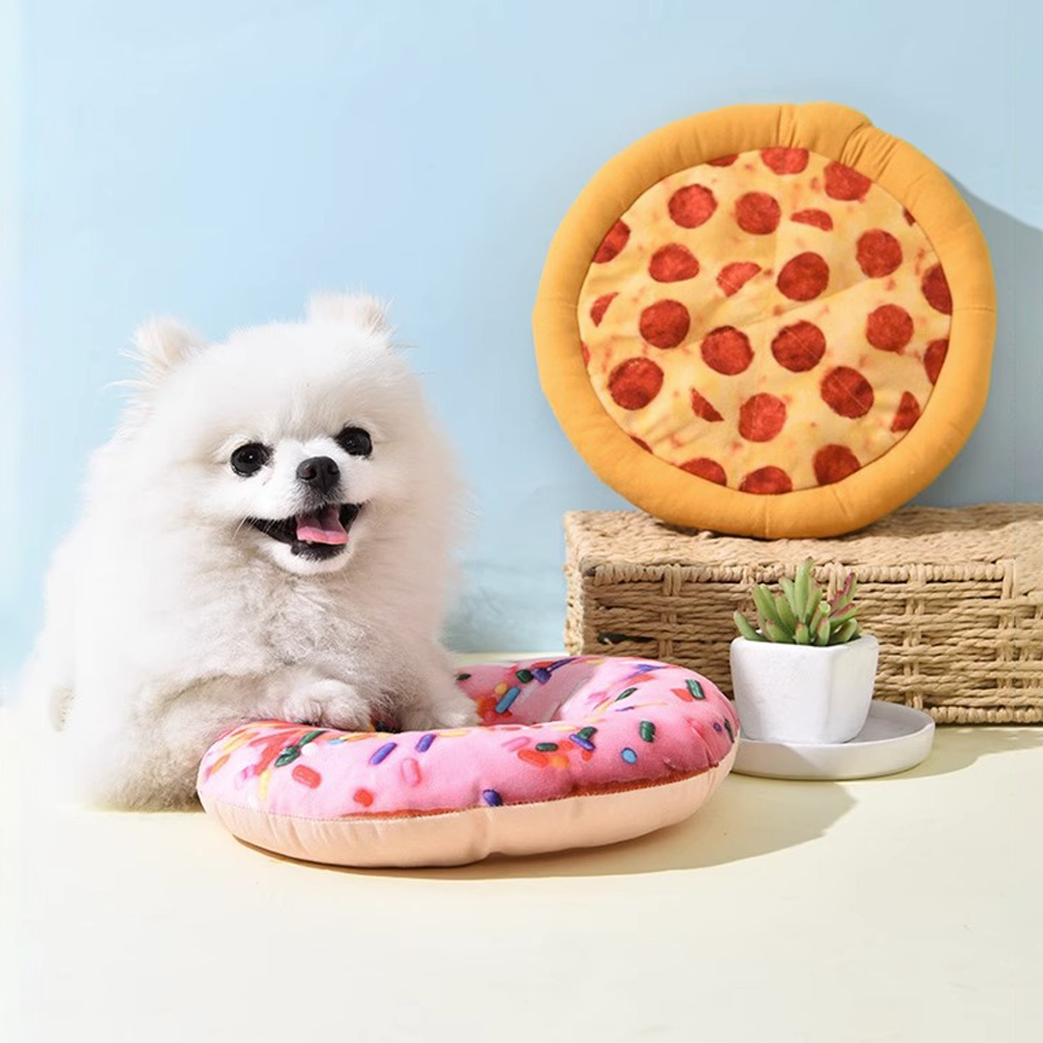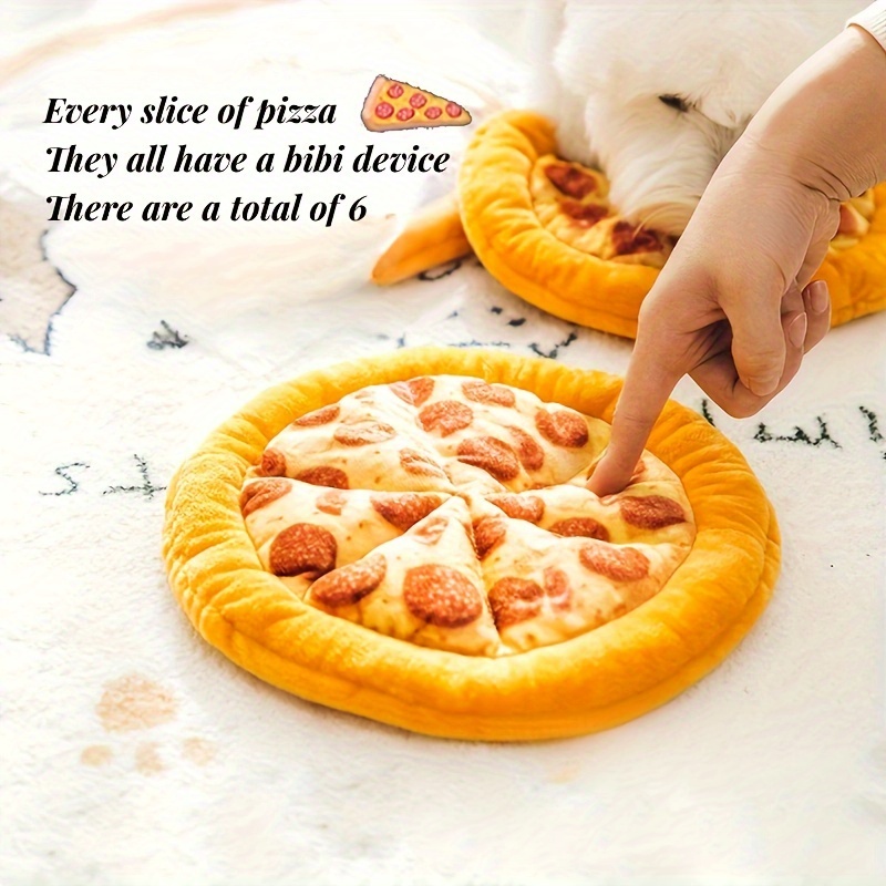 1pc Pizza Doughnut Design Pet Teeth Scratching Plush Toy Durable Chewing Toy Dog Interaction