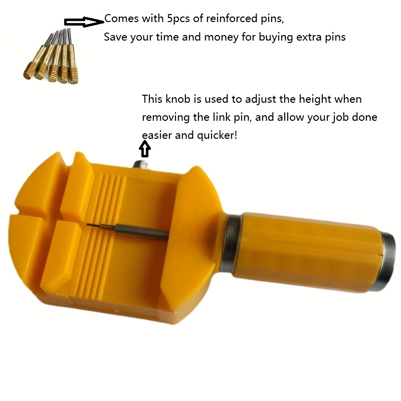 1pc Watch Bracelet Link Pin Removal Tool, Easily Watch Band Adjustment Sizing Tool ,Straps Remover Comes with 5pcs Reinforced Pins and Adjustable Height Function