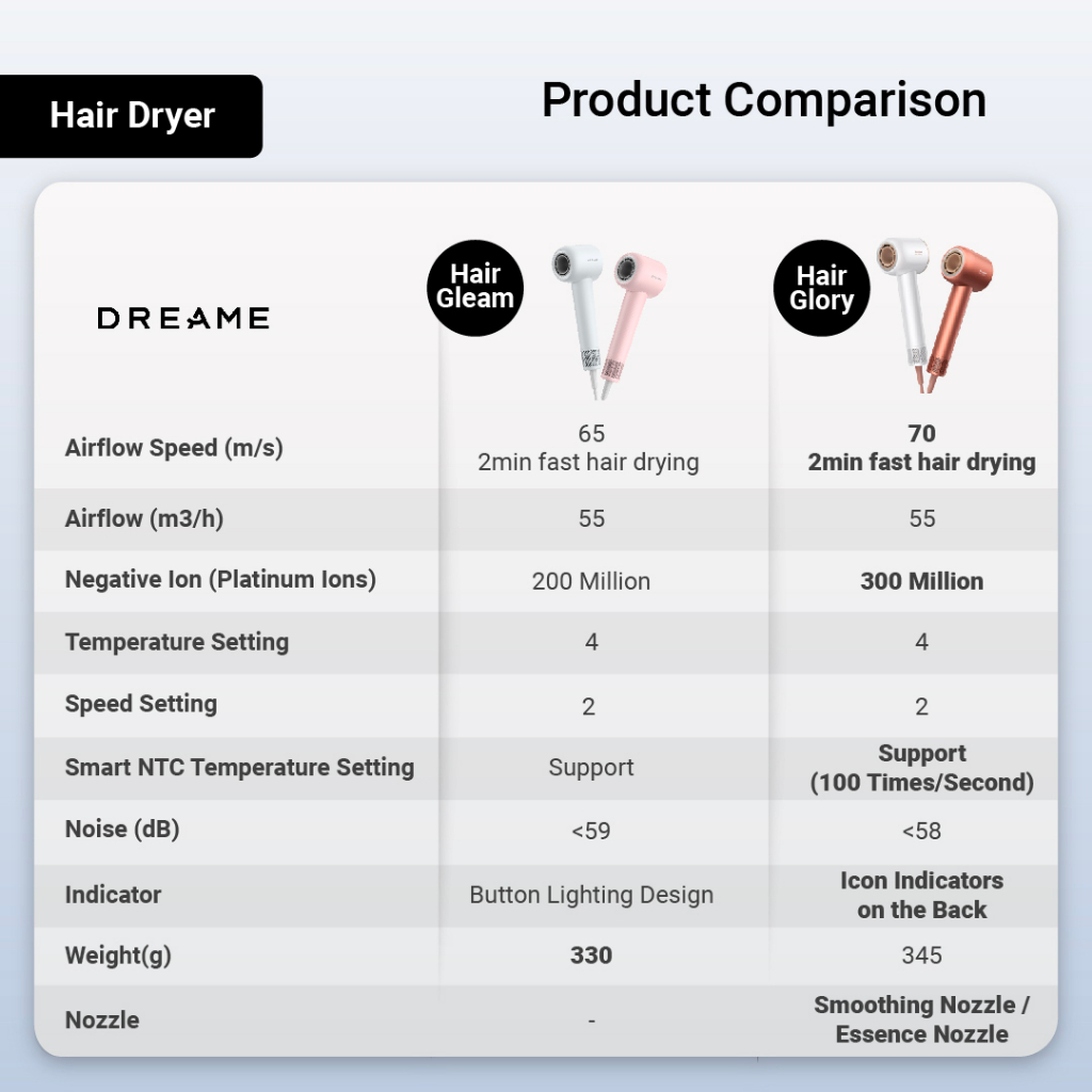 【2 Years Warranty】 Dreame Hair Gleam Hair Dryer | High Speed 2 Mins Fast Drying | 330g Lightweight