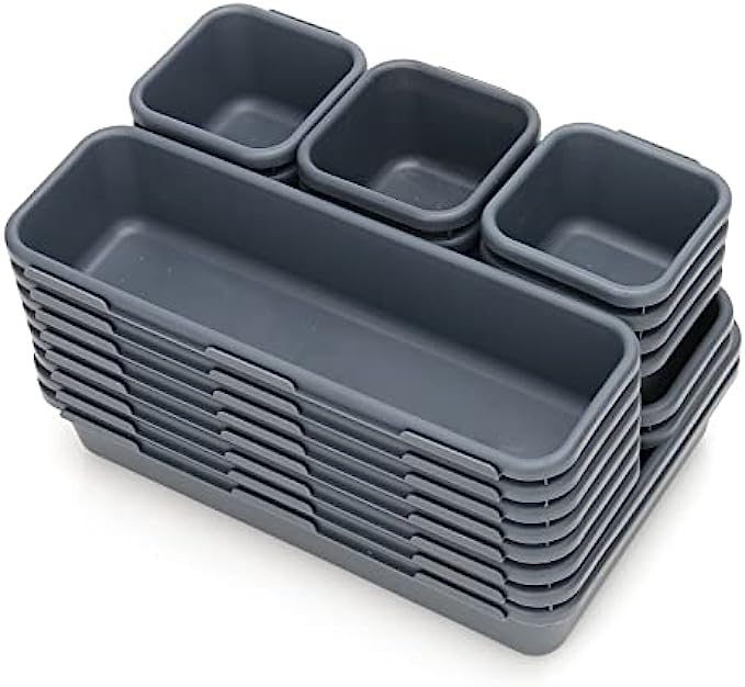 22 Pack Desk Drawer Organizers,Interlocking Junk Drawer Organizers and Storage with 3 Sizes,Desk Drawer Tray Organizer for Office,Bathroom,Kitchen,Makeup(Dark Grey)