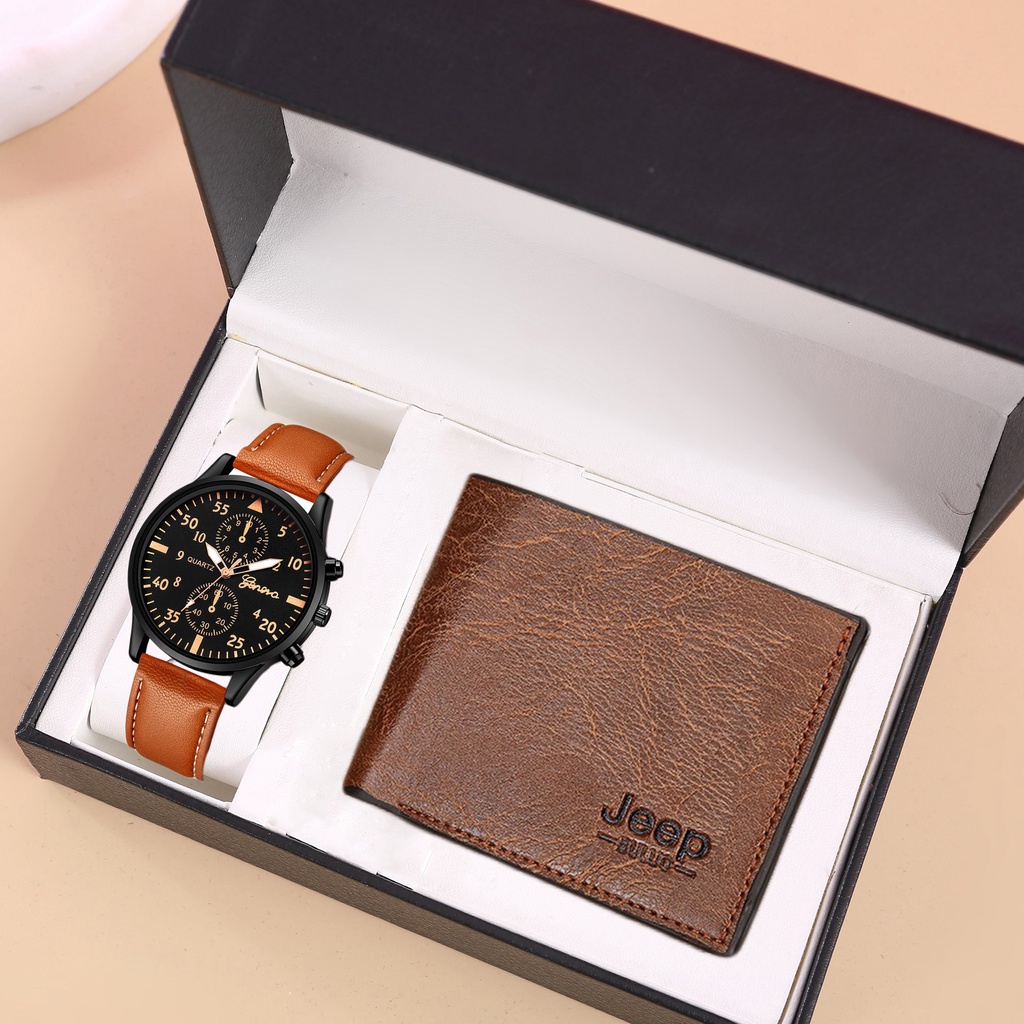 2PCS Men Watch Wallet Set Business Multi Color Round Dial PU Leather Strap Quartz Watches Exquisite Wallet NOBOX