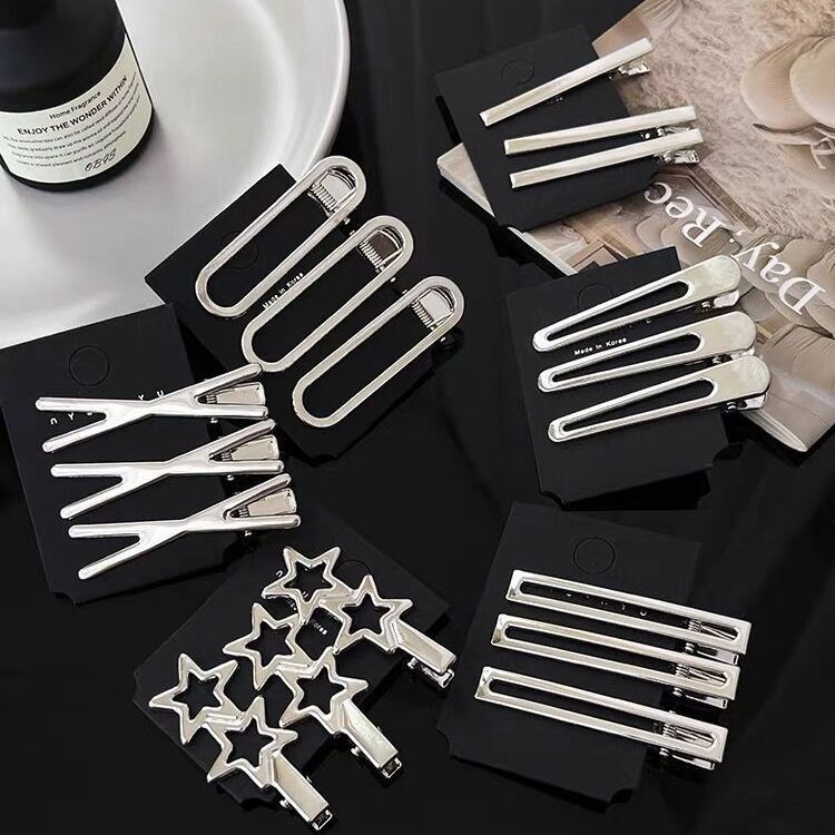 3PCS Sweet Cool Metal Cutout Hair Clip Star Side Bangs Clip Women Forehead Broken Hair Duckbill Clip Hair Ornament