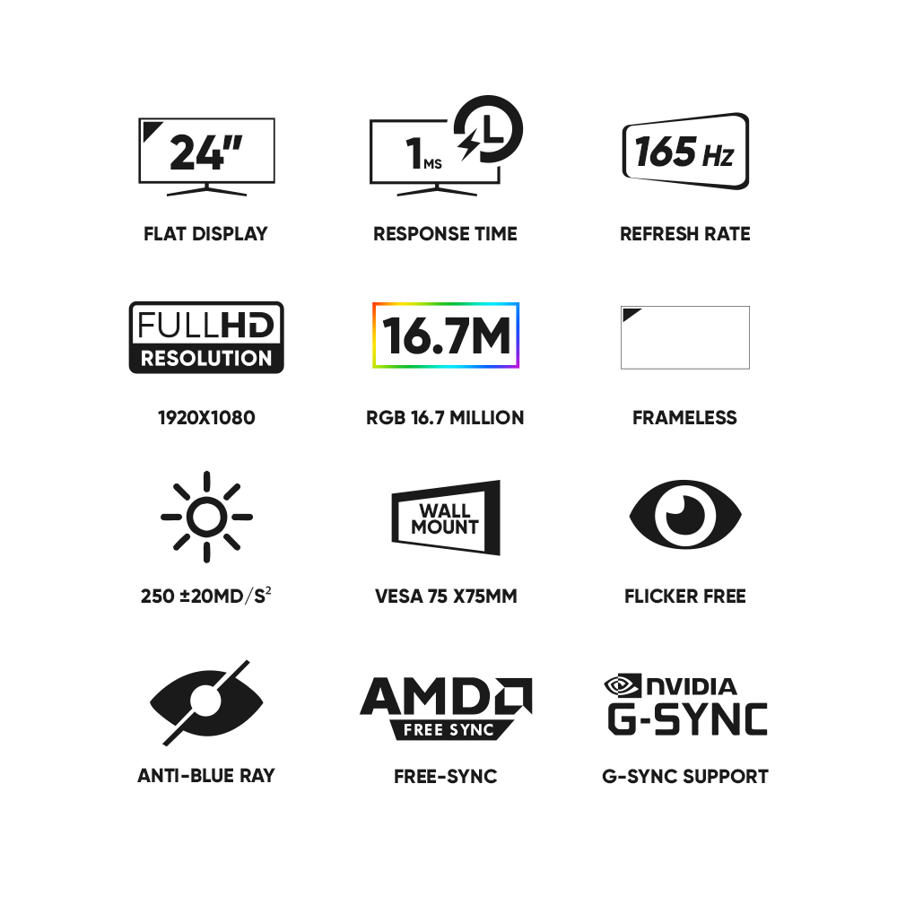 Armaggeddon Pixxel+ Xtreme XF24HD Super Gaming Monitor l 165hz Refresh Rate l 1ms Response Time