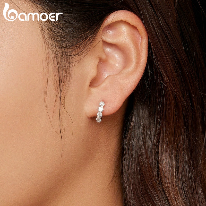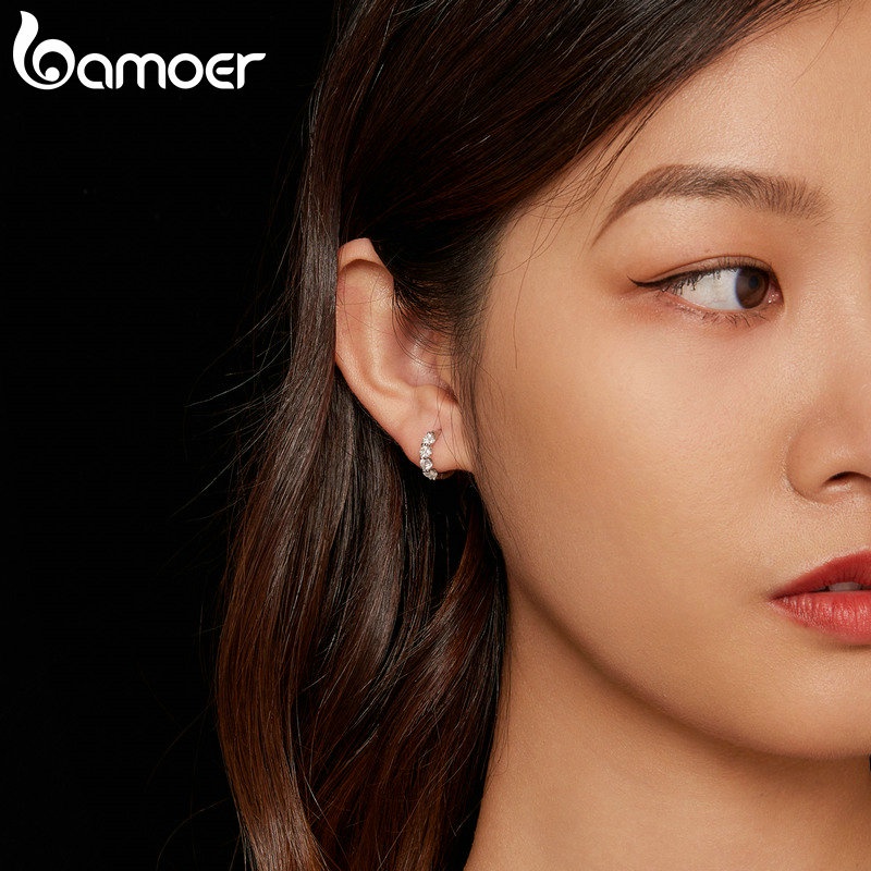Bamoer 925 Silver D-Color Moissanite 0.1 Karat Classic Six-Claw Diamond Earbuckle for Women