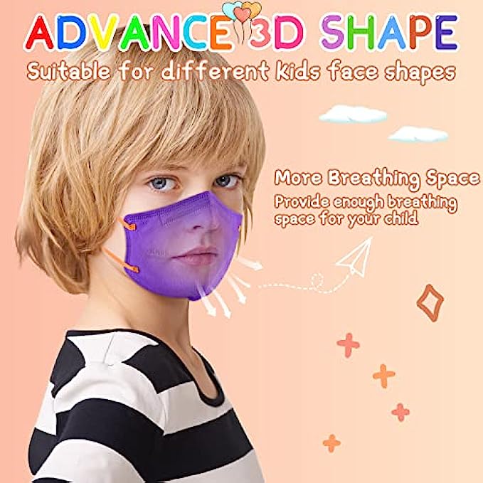• MULTIPURPOSE: Tips: we recommend leaving the kids mask for a few days before using it. The kn95 face masks can widely use indoors and outdoors, suitable for school, playground, churches shopping mall, subway and so on, protecting your kids’ from most dust, droplets, smoke, fine particles.