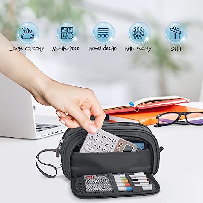【Innovative storage space for your convenience】- Our pencil case is innovatively designed with 4 compartments. The zipper pocket can store notes, the other side pocket can store commonly used cards. Both the middle zipper area and the outer zipper adopt the double zipper design, which eliminates the direction restriction brought by the zipper. The scientific space design not only makes the storage clear, but also makes it convenient for you to take the items you need.