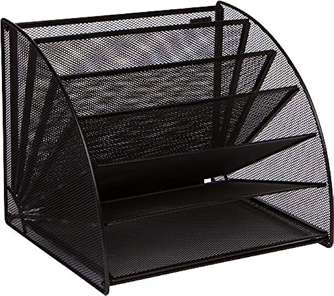 Mesh Office Organizer for Desk - Fan Shaped Desktop Organizer with 6 Compartments for Filing Paper, Bills, Letters. Desk File Organizer for Work, School, Office, Waiting Room, Classroom, and More