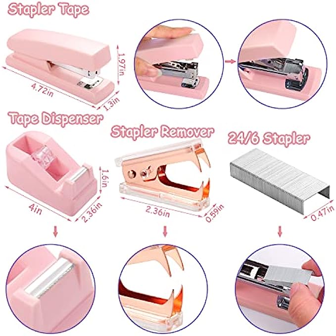 • 【Elegant Color】Our set of stapler in bright pink look stylish and elegant, not only perfect for office desktop decoration, but also as a gift for a friend or colleague, for office workers, students, teachers