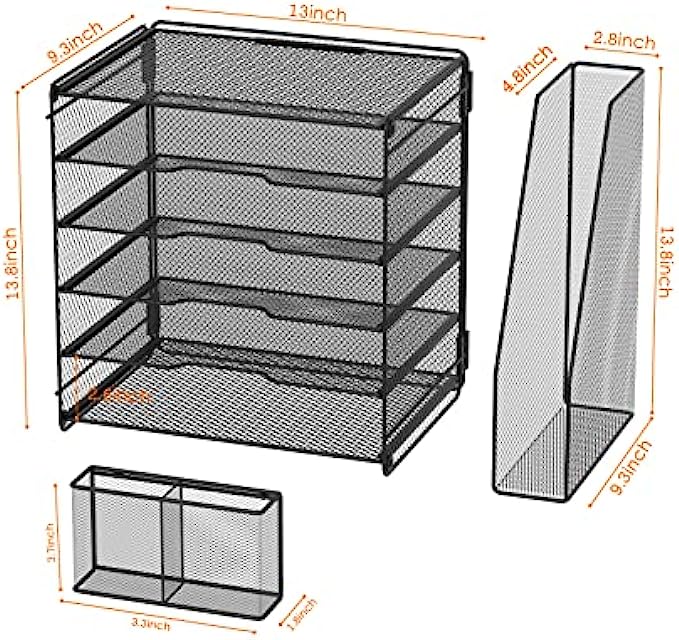 • Multiple Use Desk Organizer: Can hold all your printer paper, documents, file folders, mail forms and other paper letters. Extra vertical file sorters can stand your books and magazines,pen holders can storage your other desk accessories, all-in-one desk organizer.