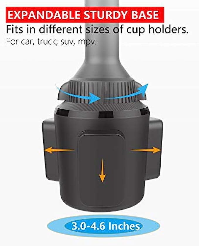 • Solid Adjustable Cup Holder: The adjustable mounting base has 3 rubber padded claws that fit securely into a car cup holder between 3.02" and 4.62" in diameter, no wobbling even on a bumpy road, enjoy hands-free driving, and spend more times at the wheel. Tool-free installation, simply adjust the screw to expand the base to fid your cup holder.
