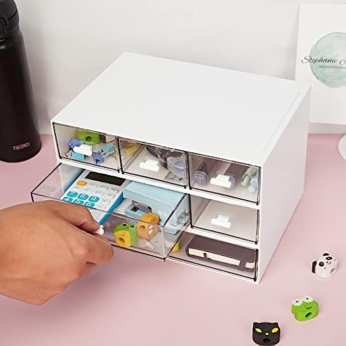• PERFECT SIZE - 8.8*6.5*1.7inch/22.5*16.5*4.3cm, elegant look, it fits easily in the desk. clear drawers design easy to see through and keep everything in order and easy to access