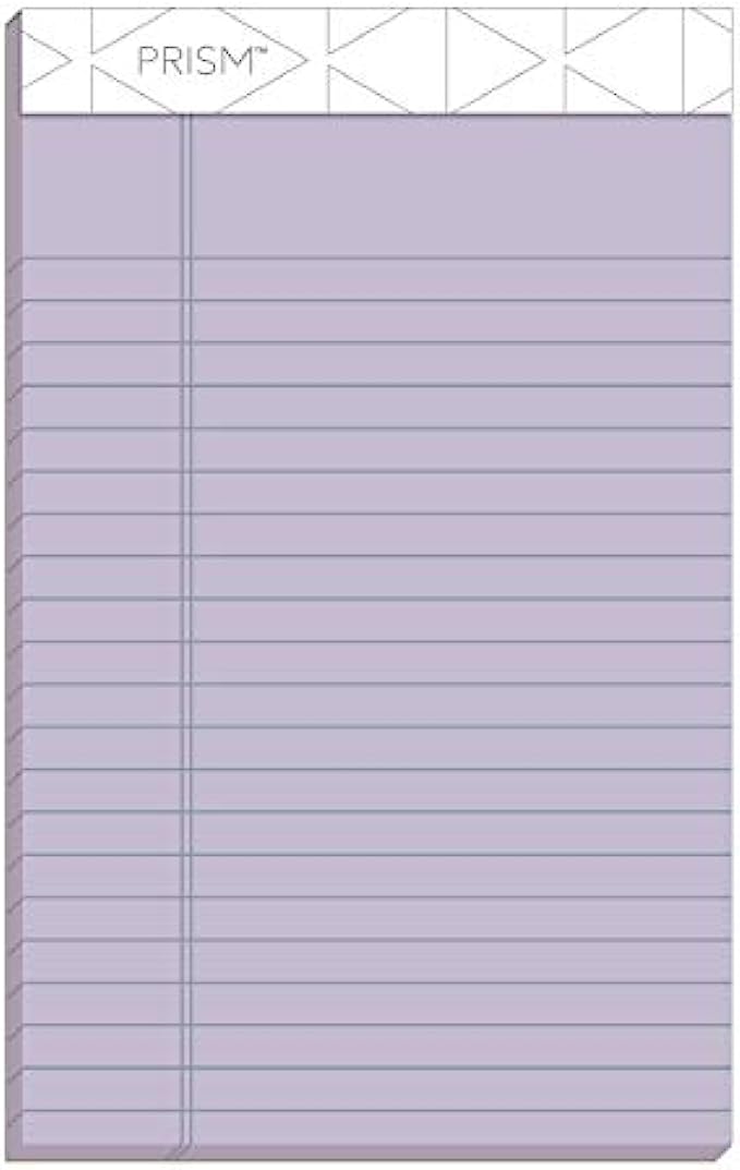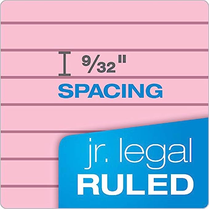 TOPS Prism+ Writing Pads, 5x 8, Perforated, Jr. Legal Ruled, Narrow 1/4 Spacing, Assorted Colors, 2 Each: Pink, Orchid, Blue, 50 Sheets, 6 Pack (63016)