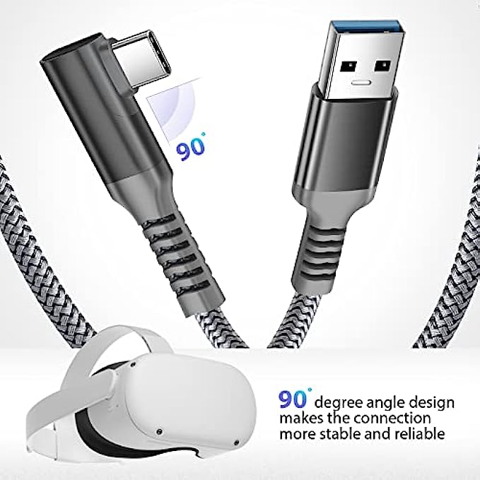 Xumee Link Cable 16ft Compatible with Meta/Oculus Quest 2, Nylon Braided 90 Degree Angle USB-A to USB-C Cable with 5Gbps High Speed Data Transfer for VR Headset and Gaming PC (A-C 16FT)