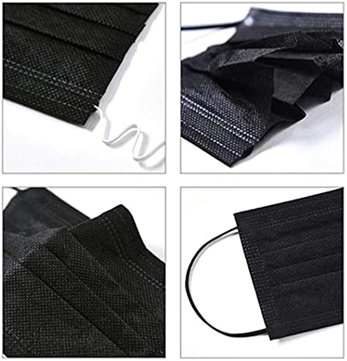 Black Face Mask 100pcs Disposable Masks Breathable 3 Layer Masks Mouth Cover for Adult Men & Women