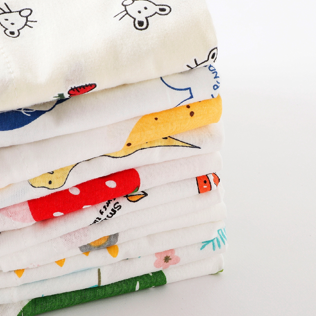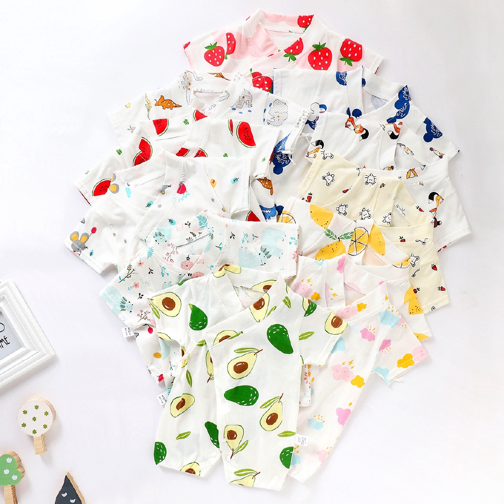 Received the products in good condition. Very fast delivery. It was in a zip lock bag upon received, well packaged. The materials quite soft and thin, suitable for hot weather in Singapore. Very cute designs and colors, love the avocado. All with ties, no button. Suitable for baby. Will consider to buy again in the future!