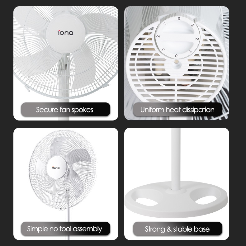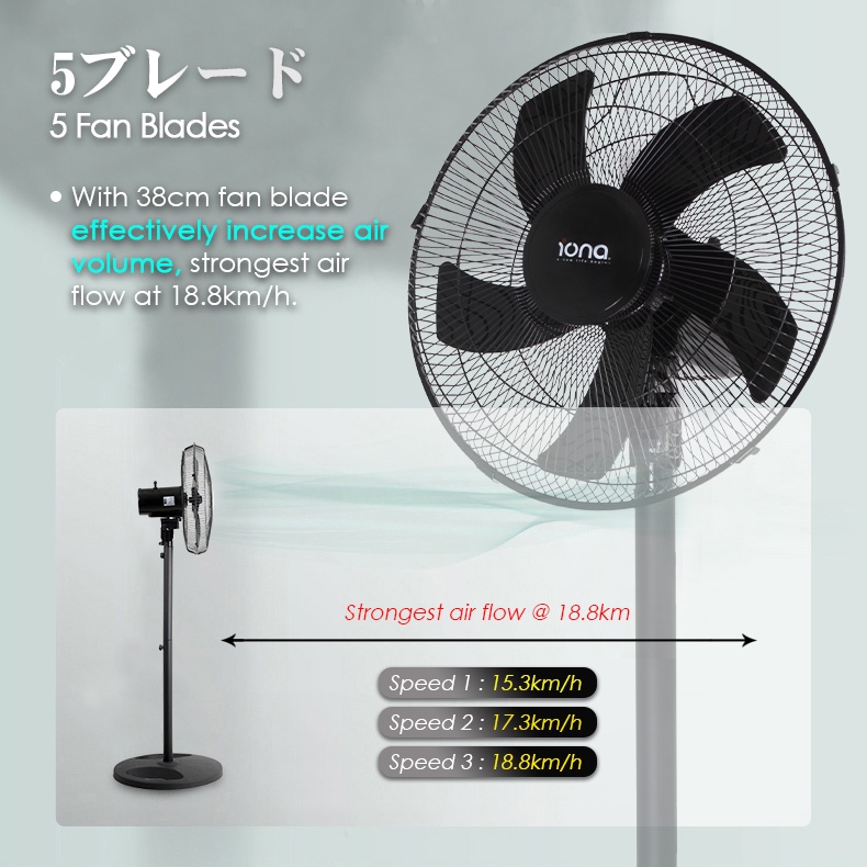 IONA 16" 5 Blade Black White Adjustable Stand Standing Fan | Electric Tatami Fan 家用风扇 風扇 - GLSF166