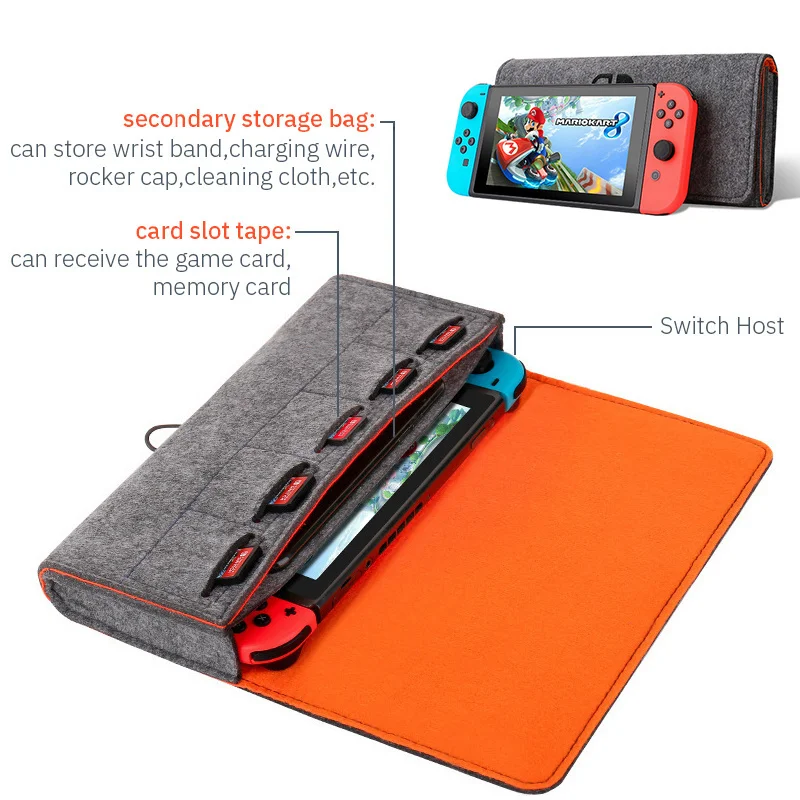 Jomaa Switch Felt Storage Bag Game Console Protective Case Nintendo Switch Multifunctional Game Card Charging Cable Case