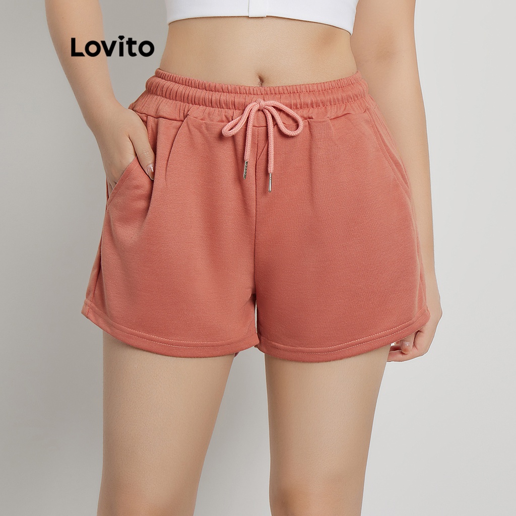 Lovito Casual Solid Drawstring Shorts for Woman L00242 (White/Black/Grey/Pink/Blue)