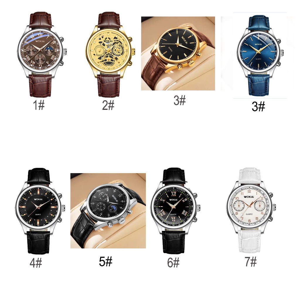 POSHI Men's Watch Leather Business Sport Waterproof Quartz Analog Watch jam tangan lelaki with box man's