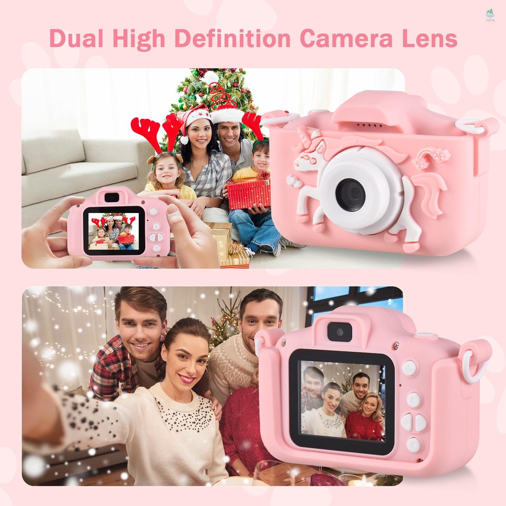 Mini Cartoon Kids Digital Camera 1080P Digital Video Camera for Kids Dual Lens 2.0 Inch IPS Screen Built-in Battery Cute Photo Frames Interesting Games with Neck Strap Birthday Chr