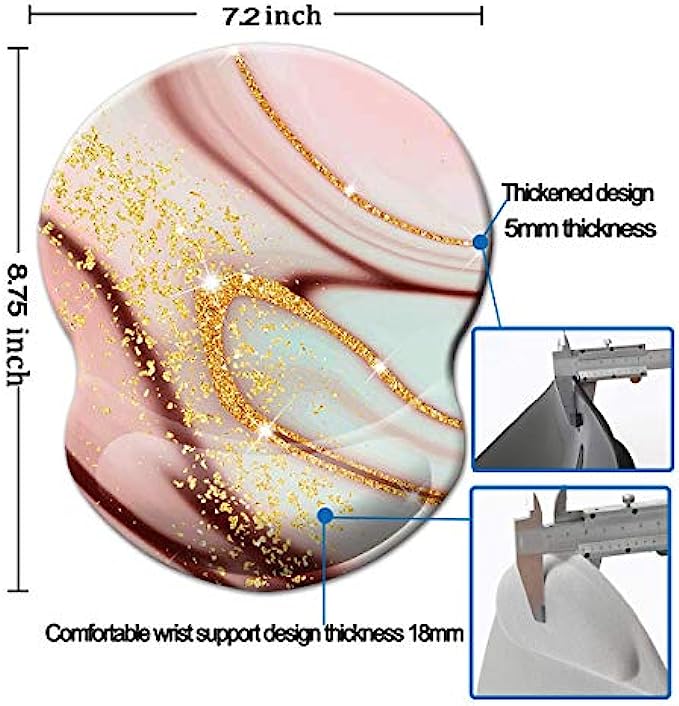 • PERFECT SIZE WRIST MOUSE PAD: Measure 8.75 x 7.5 x 0.2inch ( 220mm x 190mm x 5mm), Wrist Support Thickness: 0.7inch (18mm), small size but perfect size for working and gaming.