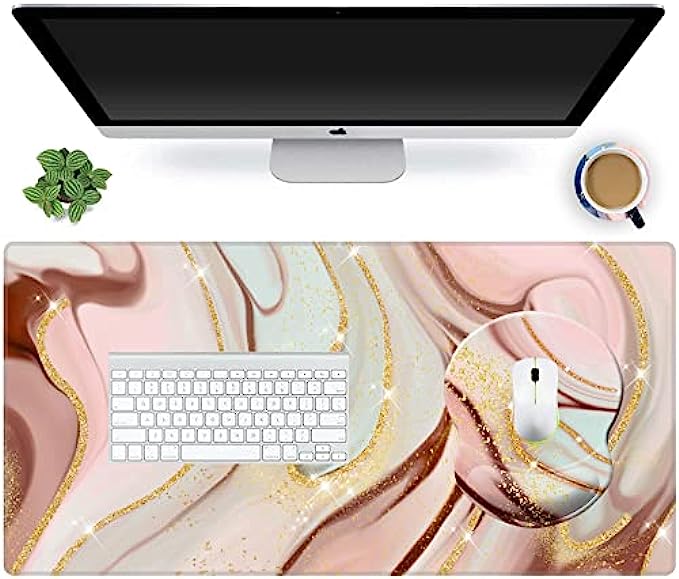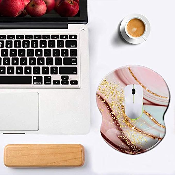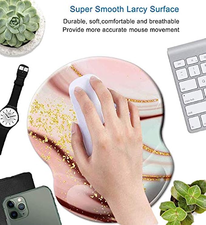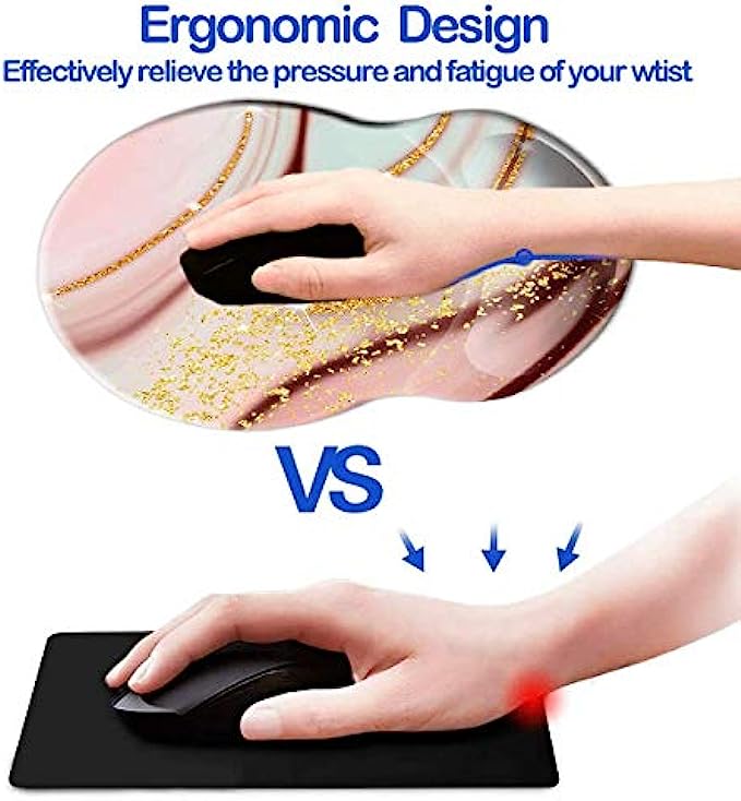 Mouse Pad with Wrist Support, Non Slip Mousepad Wrist Rest for Office, Computer, Laptop & Mac- Durable & Comfortable & Lightweight Ergonomic Support Mouse Mat (Pretty Marble-Wrist-5)