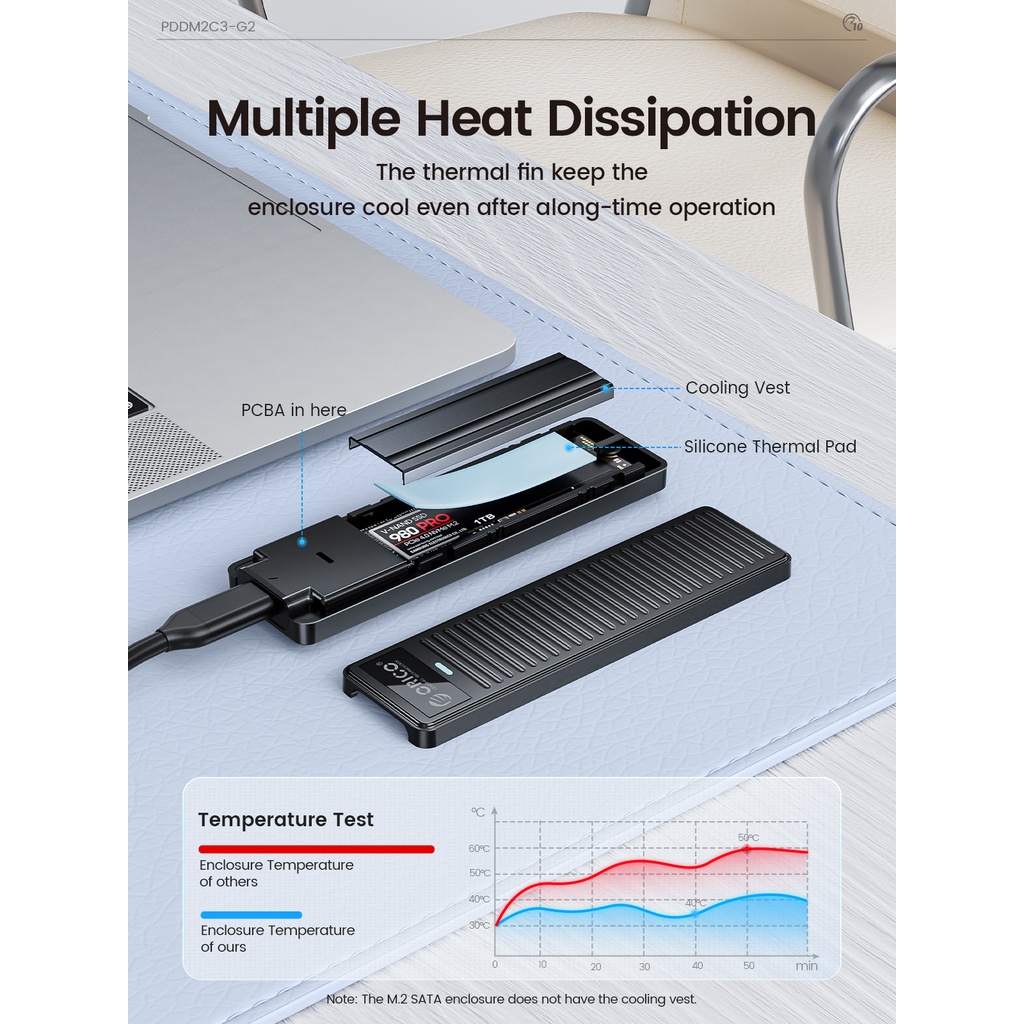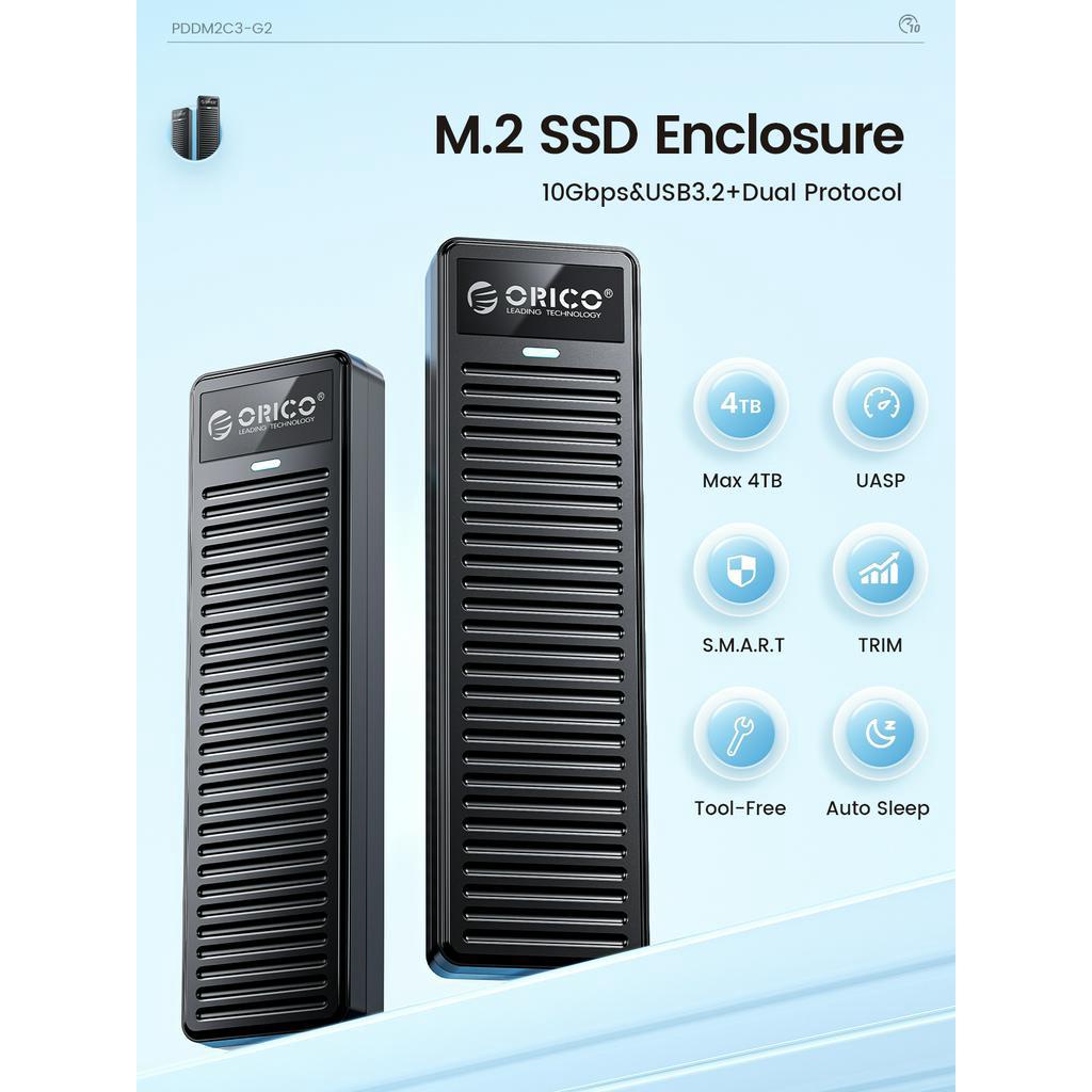 ORICO M.2 NVMe SSD Enclosure 10Gbps USB 3.2 Gen2 M2 SSD Enclosure Case Box Simple Design for NVMe SATA Tool-free Support UASP(PDDM2C3)