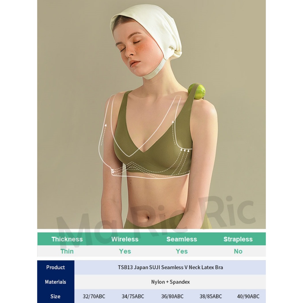 (SG InStock) Japan Suji Bra Seamless Wireless V Neck Latex Bra (Seamless. Strapless. Sports) - TSB13