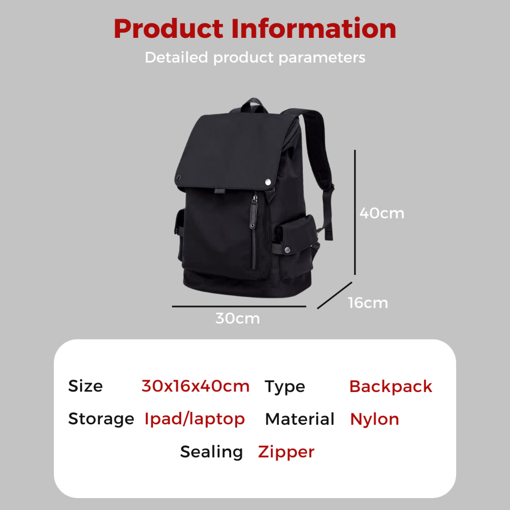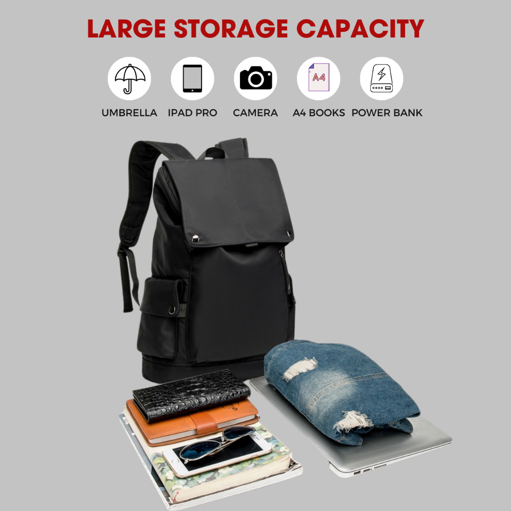 【SG STOCK】Black travel laptop backpack men bag pack Nylon Oxford cloth waterproof Fashionable with large casual capacity bag