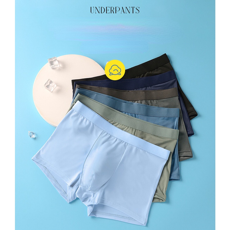 1PC Men's Ice Silk Boxer Briefs Silky Breathable Mid Waist Underwear
